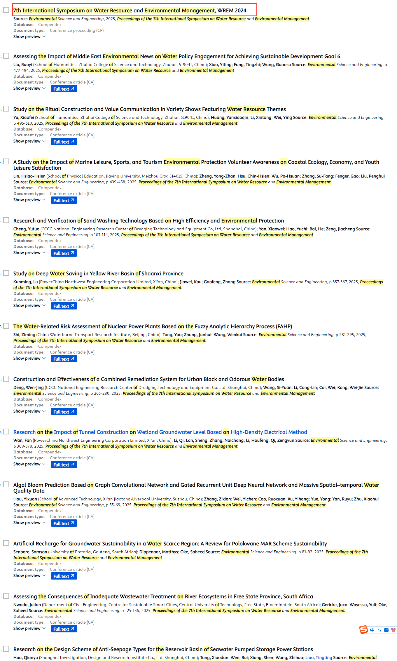 Good news: Conference proceeding of WREM 2023 Published on Environmental Science and Engineering has been indexed by EI database already.